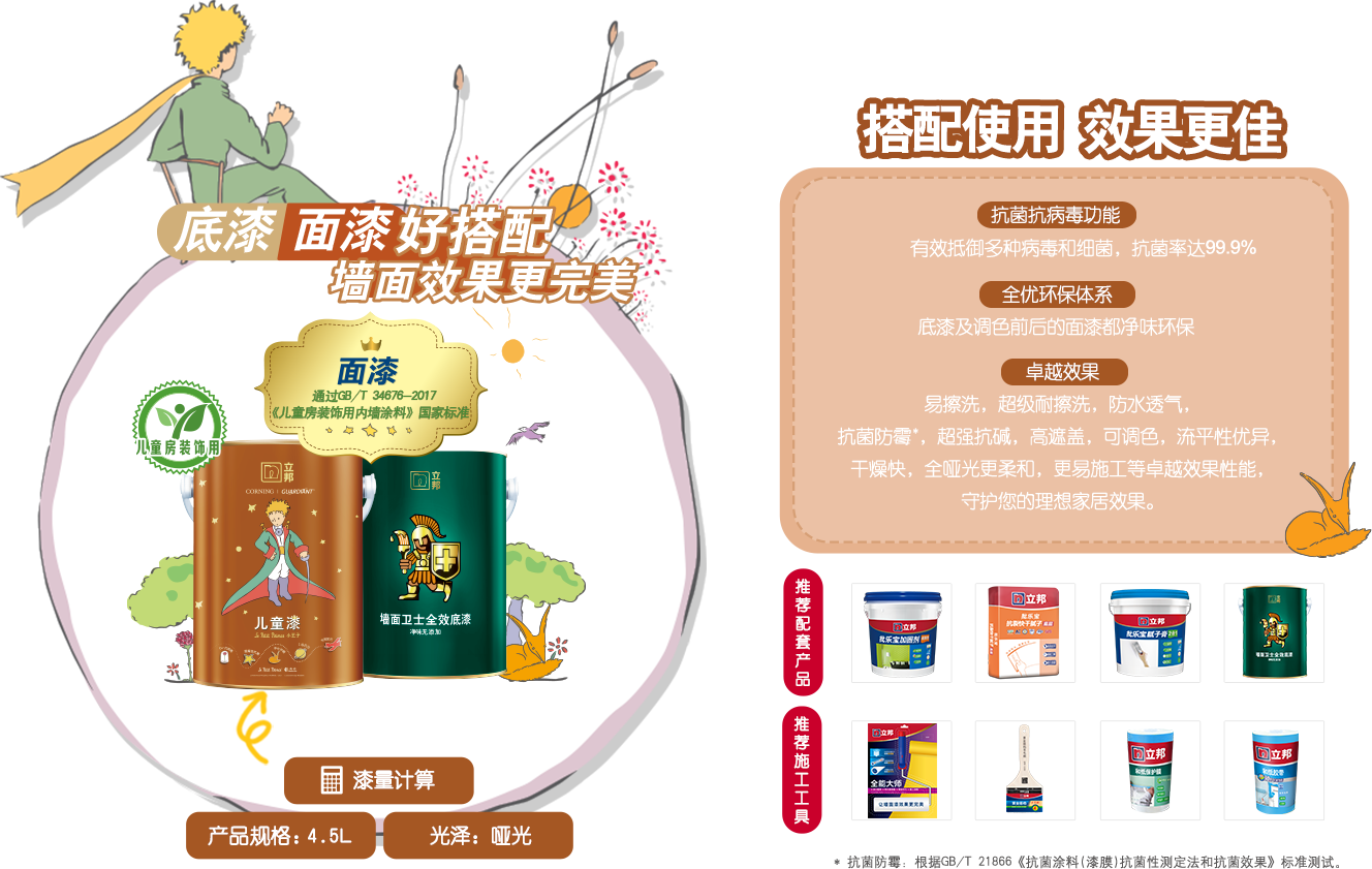 立邦儿童漆漆膜,利用甲醛和污渍体积差异,让甲醛分子通过并分解成水分子,同时阻止污渍渗入。